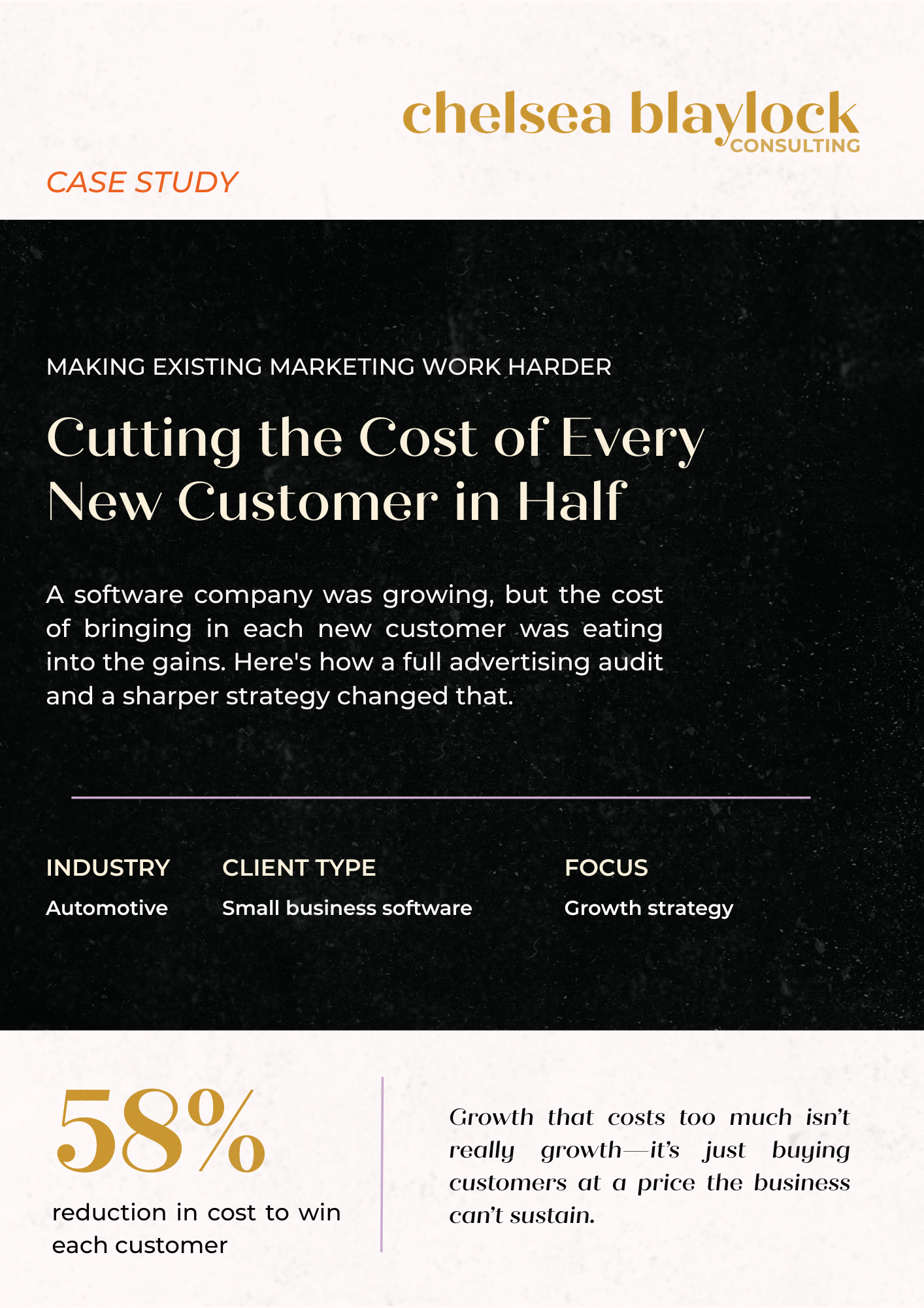 Reducing Costs of Customer Acquisition Mar 18 Written By Chelsea Blaylock CUSTOMER ACQUISITION COST (CAC) REDUCTION Real business. Real constraints. Here's what changed and why.GET THE FULL STORY → Chelsea Blaylock